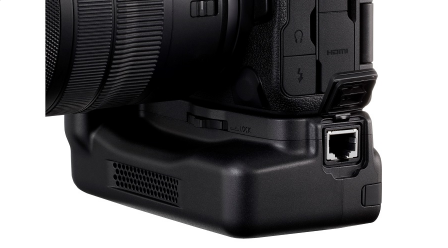 カメラに内蔵された通信機能は同じですが、拡張アクセサリーのグリップを使用するとR5Ⅱは有線LANを使用可能になります。これにより高速通信でカメラのデータを送信することが可能なので、より業務用の機能と言えるでしょう。