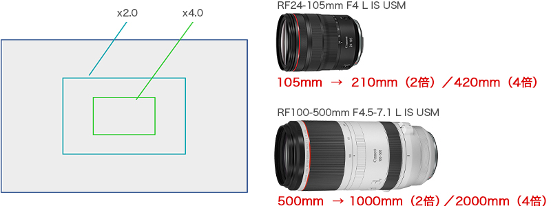 R5Ⅱにはデジタルテレコン機能があり、画像を2倍と4倍にデジタル処理することができます。勿論その分画質は劣化してしまいます。