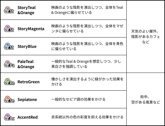 14種のカラーフィルターもあり、撮影時に自分好みの色味を付けることができるので、撮影後の手間を省くことができます。